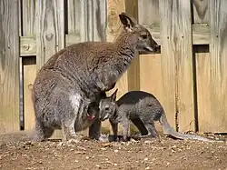 The Wallaroo Walkabout that opened in 2007 lets guests walk directly through the exhibit, which is home to common wallaroos and red-necked wallabies, as well as some Australian birds including the emu, laughing kookaburra and Cape Barren goose. Visitors are able to interact with the wallaroos and wallabies if they stay on the walkway. Then after the wallabies and wallaroos, guests can go into the Lorikeet Landing, which is an Australian exhibit that is a walkthrough aviary filled with several brightly colored birds known as lorikeets. Currently, the zoo houses 56 Lorikeets in a mixed flock consisting of 5 species of bird. Visitors can feed nectar to the birds right out of their hands.[18] Wallaroo Walkabout is set to be renovated by 2025 to support Red kangaroo and Southern cassowary.
