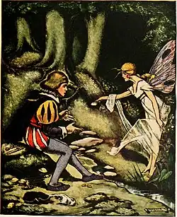 ![]() The prince releases the fairy woman from the fruit. Illustration by Edward G. McCandlish for Édouard René de Laboulaye's Fairy Book (1920). | |
