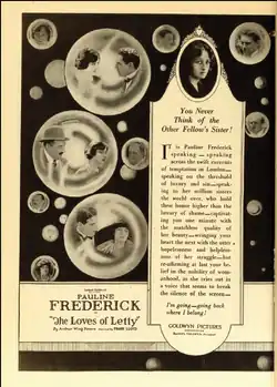 The Loves of Letty is a 1919 American silent drama film produced and distributed by Samuel Goldwyn and directed by Frank Lloyd. Based on the play Letty by Arthur Wing Pinero, the film features Pauline Frederick in the title role.[1] It was originally considered a lost film, but a print with some deterioration has reportedly been found in a European collection.[2]