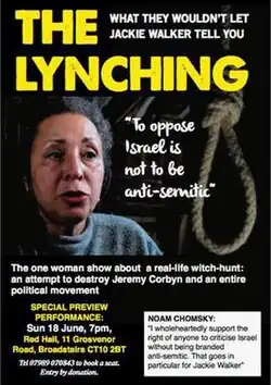 - ^ Macaskill, Mark (16 July 2017). "Far-Left Activist Jackie Walker Gets Standing Ovation for Antisemitic Play". The Times. Retrieved 1 July 2018.