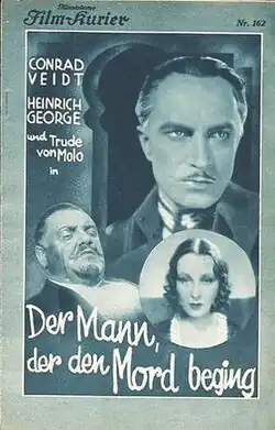 The Man Who Murdered (German: Der Mann, der den Mord beging) is a 1931 German crime drama film directed by Curtis Bernhardt and starring Conrad Veidt, Trude von Molo and Heinrich George.[1] It is adapted from the 1906 novel L'homme qui assassina by Claude Farrère. The film's sets were designed by the art directors Heinrich Richter and Hermann Warm. It was shot at the Babelsberg Studios in Potsdam.[2] Location filming took place in Istanbul and around the Bosphorus. It premiered at the Gloria-Palast in Berlin. The following year a separate English version, Stamboul, was made.
