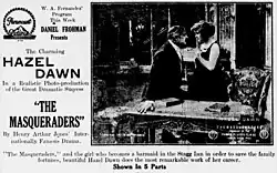 The Masqueraders is a 1915 American drama silent film directed by James Kirkwood, Sr. The film stars Hazel Dawn, Elliott Dexter, Frank Losee, Norman Tharp, Ida Darling and Evelyn Farris. It is an adaptation of the 1894 play by English dramatist Henry Arthur Jones. The film was released on October 28, 1915, by Paramount Pictures.[1][2][3]