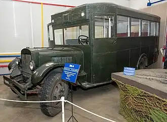 The bread van in which the bandits traveled was a "monument car" - a GAZ-AA from the 1940s; the film crew borrowed it "from a pedestal in Moskhlebtrans". The car was among the first vans to begin delivering bread in Moscow; it was in poor technical condition, and the scene of it driving in front of a train during the chase was filmed with a certain risk.[39] The Studebaker US6 truck was obtained from the Mosfilm studio. The car in the frame was towed - the only equipment that worked was the brakes. To film the scene of the fall into the river, the truck was accelerated "downhill" with the help of a pusher.[17] Mosfilm also provided a ZIS-8 bus nicknamed "Ferdinand", which served as the main means of transportation for the MUR officers.[40]