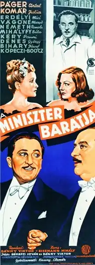 The Minister's Friend (Hungarian: A miniszter barátja) is a 1939 Hungarian comedy film directed by Viktor Bánky and starring Antal Páger, Júlia Komár, Mici Erdélyi and Béla Mihályffi.[1][2] It was shot at the Hunnia Studios in Budapest. The film's sets were designed by the art director Imre Sörés.