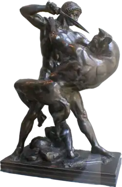 As the Minotaur lies dying, he laments his empty existence, neither fully man nor fully beast. He pulls out the bloodied sword from his side and declares that he is the son of Poseidon. The chorus leave the labyrinth as the Minotaur dies. A Ker enters to feed on his body.[7]