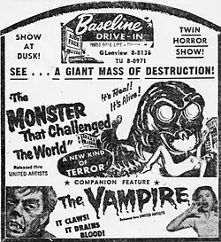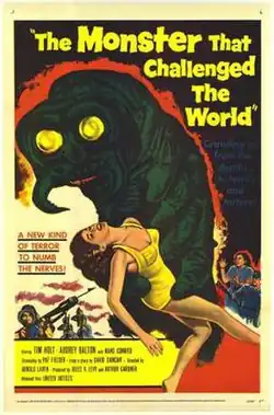 The Monster That Challenged the World is a 1957 black-and-white science-fiction monster film from Gramercy Pictures,[a] produced by Arthur Gardner, Jules V. Levy, and Arnold Laven (who also directed), and starring Tim Holt and Audrey Dalton.[1] The film was distributed by United Artists as the top half of a double feature with The Vampire. The film concerns an army of giant molluscs that emerge from California's Salton Sea.[2]