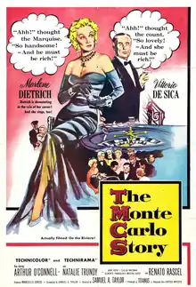 The Monte Carlo Story is a 1956 romantic comedy film starring Marlene Dietrich and Vittorio De Sica, with Arthur O'Connell, Natalie Trundy, and Renato Rascel in support. The picture was written and directed by Samuel A. Taylor, based on an original story by Taylor, Marcello Girosi, and Dino Risi. Marcello Girosi produced the film, which was the first shot in the Technirama process. Jean Louis designed the costumes.