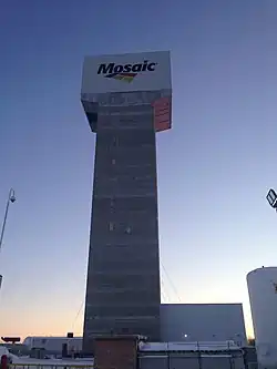 Mosaic has approximately 10.4 million tonnes of operational potash capacity.[5] Mosaic currently owns potash mines or surface mills at; Belle Plaine, Colonsay, Esterhazy K1, Esterhazy K2, Esterhazy K3 and Carlsbad, with another potash mine recently purchased in Brazil during the Vale Fertilizantes acquisition. Colonsay mine and mill has been indefinitely idled and is currently in care and maintenance mode. Esterhazy K3, currently in development, consists of an underground mine and service/production shafts separate from the K1 and K2 underground mine that is beginning to supply the K1 and K2 surface facilities with ore.[6] Esterhazy K3 does not have surface milling and storage facilities, instead it is intended to replace the ore currently mined from the K1 and K2 mine. This shift in production will decrease brine management costs of the K1 and K2 mine, which stood at $108.0 million for 2020.