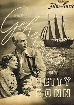 The Mystery of Betty Bonn (German: Das Geheimnis um Betty Bonn) is a 1938 German adventure film directed by Robert A. Stemmle and starring Maria Andergast, Theodor Loos and Hans Nielsen.[1] The film was shot at the Babelsberg Studios in Berlin with sets designed by the art directors Wilhelm Depenau and Ludwig Reiber. It was made by the leading German company UFA, based on a novel by Friedrich Lindemann.