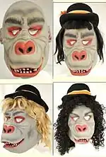 Of the three gorillas shown, all wearing hats, long coats, and white gloves, the middle gorilla, always played by Kovacs with a cigar, conducted the musicians with either a baton or a banana.[4] To the viewer's left stood a gorilla holding two oversized timpani mallets. The identity of this ape varied, but among Kovacs's celebrity friends both Jack Lemmon[3][5] and Frank Sinatra are known to have performed the character. Seated at a piano at screen right was a female simian, variously played by Barbara Loden, Jolene Brand, and Kovacs's wife, Edie Adams, who robotically thumped her hands up and down on the keys.[2][6]