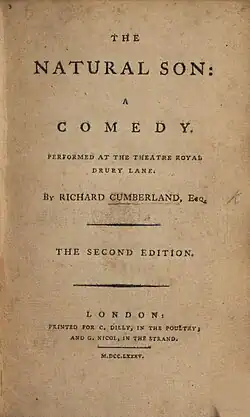 The Natural Son is a comedy play by the British writer Richard Cumberland.[1] It was first staged at the Drury Lane Theatre in London in December 1784.[2] The play is notable for the return of the popular character Major O'Flaherty from Cumberland's 1771 play The West Indian.[3]