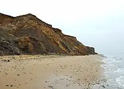 This coastal site has a variety of terrestrial and marine habitats, and many migrating and nesting birds, such as dark bellied brent geese, sedge warblers, barn owls and whitethroats. The cliff is eroding at one to two metres a year.[1]
