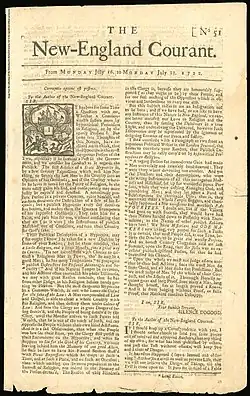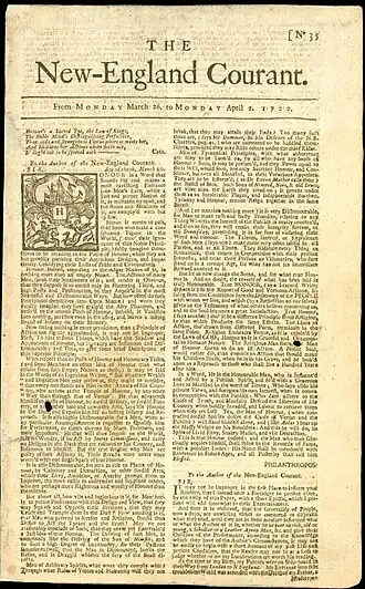 {{cite book}}: CS1 maint: publisher location (link) - "The New-England Courant". Independence Hall Association. Retrieved December 21, 2021.