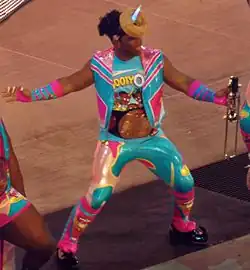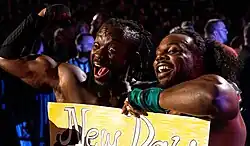 ![]() The New Day's Kofi Kingston (left) and Xavier Woods at a WWE Live tour event in 2016 | |