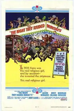 The Night They Raided Minsky's is a 1968 American musical comedy film written and produced by Norman Lear, with music and lyrics by the duo of Charles Strouse and Lee Adams, and directed by William Friedkin. Based on a 1960 novel by Rowland Barber, the film is a fictional account of the invention of the striptease at Minsky's Burlesque in 1925. It stars Jason Robards, Britt Ekland, Norman Wisdom, Forrest Tucker, Harry Andrews, Denholm Elliott, Elliott Gould and Bert Lahr.
