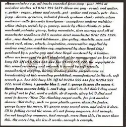 The simple black-and-white cover of the EP contains the recording info, copyrights, thank you notes, track listing and lyrics to "George Lassoes the Moon".