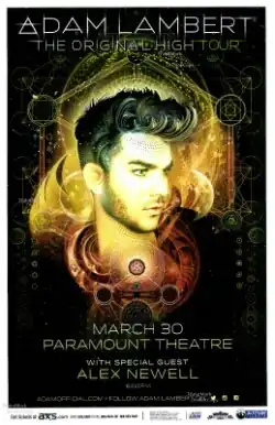 The Original High Tour was the third solo (sixth overall) concert tour by American singer/songwriter Adam Lambert, launched in support of his third studio album, The Original High. The tour began on December 31, 2015 in Singapore and continued throughout China, Japan, South Korea, New Zealand, Australia, United States and Europe concluding in Munich on May 6, 2016.