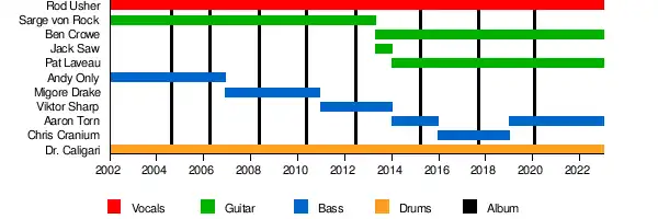 | Members | Rod Usher, Dr. Caligari, Pat Laveau, Ben Crowe, Aaron Torn |