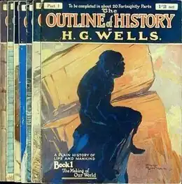 The Outline of History, subtitled either "The Whole Story of Man" or "Being a Plain History of Life and Mankind", is a work by H. G. Wells chronicling the history of the world from the origin of the Earth to the First World War. It appeared in an illustrated version of 24 fortnightly installments beginning on 22 November 1919 and was published as a single volume in 1920.[1][2] It sold more than two million copies, was translated into many languages, and had a considerable impact on the teaching of history in institutions of higher education.[3] Wells modelled the Outline on the Encyclopédie of Denis Diderot.[4]