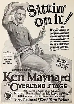 The Overland Stage is a 1927 American silent Western film directed by Albert S. Rogell and written by Marion Jackson. The film stars Ken Maynard, Kathleen Collins, Tom Santschi, Sheldon Lewis, Dot Farley, and Florence Turner. The film was released on January 31, 1927, by First National Pictures.[1][2][3]