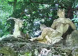 In 19th-century culture and political writings, the god Pan often embodied pantheism and the spirit of revolution.[10] Baudelaire evoked him in the poem "La Muse malade" in Les Fleurs du mal, where he stood for a positive and ancient vigor.[11] By the time he wrote "The Pagan School", Baudelaire was disillusioned with this imagery and viewed it as artificial and disconnected from the momentum of real popular movements.[10] He wrote that the young neopagan "spoke of the god Pan as if he were the prisoner of St. Helena", which is a reference to Napoleon, who was nicknamed Grand Pan (lit. 'Great Pan').[12]