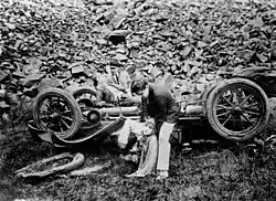 Pearl White performed most of her own stunts for the serial, but also was stunt doubled by a man. Filmed in the Adirondacks in New York, the stunt double rode a horse off a cliff into the lake below.[11] Considerable risk was involved. In one incident, a balloon carrying White escaped and carried her across the Hudson River into a storm, before landing miles away. In another incident her back was permanently injured in a fall.[3]