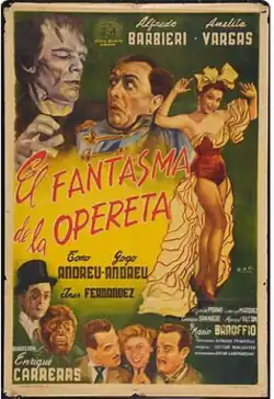 The Phantom of the Operetta (Spanish:El Fantasma de la opereta) is a 1955 Argentine musical comedy film directed by Enrique Carreras and starring Alfredo Barbieri, Amelia Vargas and Tono Andreu. The film premiered on 24 June 1955.[1] The film's sets were designed by the art director Óscar Lagomarsino.