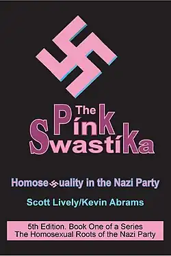 The book was first published in 1995 by Founders Publishing Corporation. In 2017, the authors released the fifth edition, published by Veritas Aeterna Press.[4][5] They state that their motivation for writing the book is to respond to the "myth of the 'pink triangle'"[2] and the "gay political agenda".[6] One significant source for The Pink Swastika was Samuel Igra's Germany's National Vice (1945).[7] Among other things, Igra claimed that "there is a causal connection between mass sexual perversion" and German war crimes during both world wars.[8] The book attempts to synthesize Igra's allegations that German militarism had a homoerotic foundation with the Nazi occult theories popularized by American author Dusty Sklar in her book, The Nazis and the Occult (1977).[7] The claim advanced by Igra, Lively, and Abrams that homosexuals were responsible for Nazi atrocities has been frequently asserted,[8] but is rejected by most historians.[9][10]