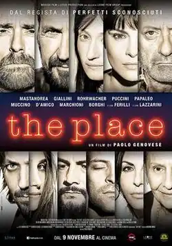 The Place is a 2017 Italian thriller drama film directed by Paolo Genovese, who also co-authored the script.[2] The film is a cinematographic adaptation of the 2010 American television series The Booth at the End created by Christopher Kubasik.[3] The movie features; Marco Giallini, Alessandro Borghi, Sabrina Ferilli, Giulia Lazzarini, Vinicio Marchioni, Valerio Mastandrea, Silvio Muccino, Rocco Papaleo, Vittoria Puccini, and Alba Rohrwacher.[4] The plot centers on a seemingly random group of nine people who want to fulfill their greatest wishes, so they enter into a Faustian pact with a mysterious man who is able to give them what they want in exchange for fulfilling his own requests.[5]