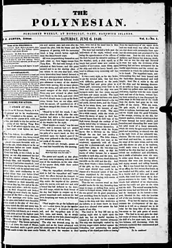 The Polynesian was a 4-8 page weekly newspaper published in Honolulu, that had two periods of publication: from June 6, 1840, to December 11, 1841, and then from May 18, 1844, to February 6, 1864. From 1845 to 1861, it was the official publication of the government of the Hawaiian Kingdom. The Polynesian was the leading newspaper in Oahu in the mid-1800s.