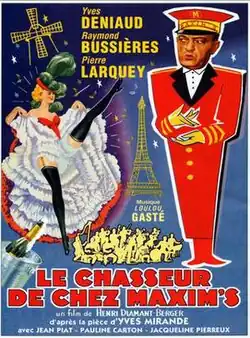 The Porter from Maxim's (French: Le Chasseur de chez Maxim's) is a 1953 French comedy film directed by Henri Diamant-Berger and starring Yves Deniaud, Pierre Larquey and Raymond Bussières. It is based on the 1923 play of the same name which has been made into several film adaptations.[1] It was shot at the Neuilly Studios and on location in Paris. The film's sets were designed by the art director Roger Briaucourt.