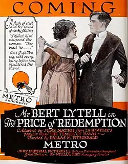 The Price of Redemption is a lost[1] 1920 American silent crime film directed by Dallas M. Fitzgerald and starring Bert Lytell, Seena Owen and Cleo Madison.[2][3]