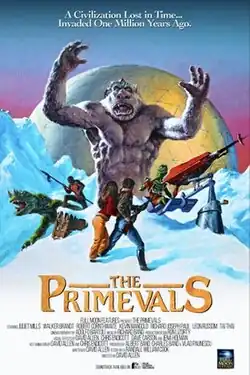 The origin of The Primevals lay in an older project titled Raiders of the Stone Ring that was developed in the late 1960s by stop-motion animator David Allen, Dennis Muren, and Jim Danforth.[2] The plot, which started as an Edgar Rice Burroughs pastiche, involved a group of explorers in the 1920s who discover an unevolved Viking society that was threatened by a race of malevolent lizard-men.[2] The group filmed a promo reel for the film with the intent of garnering funding to complete the project. Through Danforth, the project came to the attention of Hammer Films, but negotiations stalled as the studio morphed the project into a different unrealized treatment titled Zeppelin vs. Pterodactyl.[2][3]