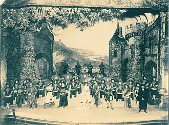 The Princess Chic premiered on New Year's Day 1900 at the Lafayette Square Opera House in Washington D. C. with Minnie Methot in the title role.[3] It then toured to the Columbia Theatre in Boston where it opened on January 16, 1900.[4][5] During its Boston run, Christie MacDonald replaced Methot as Princess Chic due to a nagging injury in early February 1900.[6] It was MacDonald's first leading role and she received critical acclaim in Boston in the part.[7] The role launched her career as a popular soprano in operettas on Broadway[8] when the work played at the Casino Theatre from February 12, 1900 through March 3, 1900.[1] Others in the original cast included Winfield Blake as Duke Charles the Bold, Melville Collins as King Louis XI, Edgar Temple as Francois, Richard Golden as Chambertin, Joseph C. Miron as Brevet, Walter A. Lawrence as Brabeau, Mathilde Preville as Lorraine, Harry Brown as Pommard, Louise Willis Hepner as Estelle, E. S. Beverley as the Herald, and F. S. Dearduff as the Captain.[9][1]