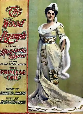 The Princess Chic is an operetta in three acts with music by Julian Edwards and a libretto by Kirke La Shelle.[1] Set in 15th century France, the work tells the tale of a fictional romance between Princess Chic of Normandy and Charles the Bold, the Duke of Burgundy during the time when the duke is in conflict with King Louis XI. While the operetta was not a success with New York critics and its Broadway run in 1900 was short, the work was ultimately profitable for its creators and had a lengthy tour that lasted ten years. The work is notable for forwarding the career of popular operetta soprano Christie MacDonald who portrayed the title role as her first leading part on the stage. Both musical selections from the operetta and a complete vocal score of the work were published by M. Witmark & Sons.