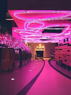 The project has been commended for its "exciting and vibrant lighting scheme".[23] Kevan Shaw lighting Design won the Lighting Design Awards in the Public Buildings Category on 12 March 2009. KSLD stated that "The lighting is designed to be an integral part of the experience of the building. Both colour and dynamics are employed to create a remarkable series of events within the multiform interior."[24] "The Public features specific treatments that range from the visual excitement of pink neon scrawled across the ceiling to the simple fluorescent fittings which are programmed to follow the flow of people and features in the "1001 Buildings to See Before You Die List"[25]