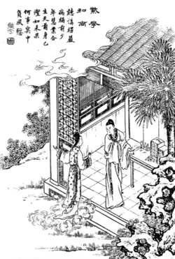 ![]() The maidservant and the scholar; 19th-century illustration from Xiangzhu liaozhai zhiyi tuyong (Liaozhai with commentary and illustrations; 1886) | |||