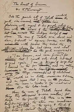 "The Quest of Iranon" is a fantasy short story by American writer H. P. Lovecraft. It was written on February 28, 1921,[1] and was first published in the July/August 1935 issue of the magazine Galleon.[2] It was later reprinted in Weird Tales in 1939.