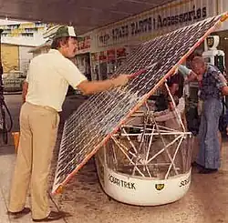 Hans Thostrup initially had the idea of auto racing using solar energy because he was interested in conserving non-renewable resources. He and Larry Perkins were inspired by the Sunmobile, a solar-powered miniature car built by General Motors which was publicly demonstrated in Chicago, United States, in 1955.[6] BP sponsored the Quiet Achiever project, which was labelled the BP Solar Trek.[8]