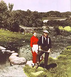 The story is set in the fictional community of Inisfree. This is not the same as the Lake Isle of Innisfree, a place in Lough Gill on the Sligo–Leitrim county border made famous by poet William Butler Yeats, which is a tiny island. Many scenes for the film were actually shot in and around the village of Cong, County Mayo, on the grounds of Cong's Ashford Castle. Cong is now a wealthy small town and the castle a 5-star luxury hotel. The connections with the film have led to the area becoming a tourist attraction. In 2008, a pub opened in the building used as the pub in the film (it had actually been a shop at the time when the movie was shot); the pub hosts daily re-runs of the film on DVD.[15] The Quiet Man Fan Club holds its annual general meeting in Ashford Castle. Other locations in the film include Thoor Ballylee, County Galway, home of poet W. B. Yeats for a period, Ballyglunin railway station near Tuam County Galway, which was filmed as Castletown station, and various places in Connemara County Galway and County Mayo. Among those are Lettergesh beach, where the horse race scene was filmed,[16] "The Quiet Man Bridge", signposted off the N59 road between Maam Cross and Oughterard[17] and the "White O'Morn" cottage. The latter is located on R336 south of Maam, but long ago fell into ruin.[18]