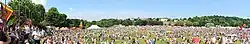 Before it was a racecourse, the Racecourse was known as Smelt Haugh or Smiddy Haughs and is thought to have been a smithy for the Prior of Durham.[2] It was first recorded as being used for horse racing in 1733. At its peak, the course had a stone grandstand and attracted 80,000 spectators for a two-day event in 1873. Racing continued at the site until around 1887.[2] From 1815 there was an annual boat procession along the River Wear at the Racecourse, celebrating Wellington's victory at the Battle of Waterloo. In 1834 this became the Durham Regatta, the second oldest regatta in England.[2][3] The Durham Miners' Gala (established 1871) has been held annually at the Racecourse since 1872.[4]