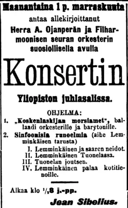 - ^ On 20 July 1905, the Helsinki-based music publisher Fazer & Westerlund (Helsingfors Nya Musikhandel) sold its Sibelius holdings (the publishing rights and printing plates) to the German firm Breitkopf & Härtel.[3]