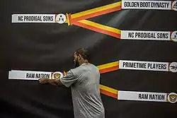 At the conclusion of each game, the winning team advances its placard on a giant bracket to the next round. The bracket resembles the All Valley Karate Tournament bracket found in The Karate Kid.[19]