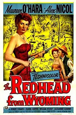 The Redhead from Wyoming is a 1953 American Western film produced by Leonard Goldstein and directed by Lee Sholem. It stars Maureen O'Hara as a saloon proprietress who becomes embroiled in a range war and Alex Nicol as the sheriff who tries to prevent it. The supporting cast includes William Bishop as a politician who provokes the war and Alexander Scourby as a prominent cattle rancher.[2]