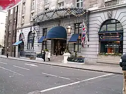 In September 1917, a shell exploded in Green Park in close proximity to the Ritz, and according to Lord Ivor Churchill it broke all of the windows to adjacent Wimbourne House.[30] David Lloyd George held a number of secret meetings at the Ritz during the latter half of the war, organised by Sir Basil Zaharoff, and it was at the Ritz that he made the decision to intervene on behalf of Greece against Turkey.[30] The Duke of Marlborough recorded dining at the Ritz; "I lunched at the Ritz. The whole social world goes there, prices being cheap. All women there from M. Paget to the latest tart."[31] A November 1917 article in the Daily Herald titled "How they starve at the Ritz" detailed the lavish meals on offer despite national food shortages. The story was extensively reprinted in leaflets and some historians believe that it pushed the government into introducing compulsory rationing.[32][33]