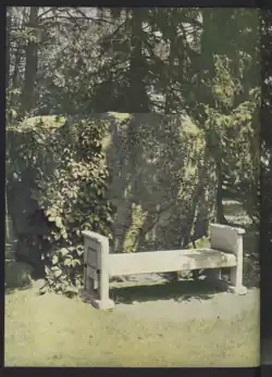 A bench was added in front of the Rock in the late 1910s, which became a popular destination for engaged and married couples. The Rock was also known as the "class rock" in the early 20th century,[5] and as the "Engagement Rock" in the mid-20th century, due to the number of marriage proposals that occurred there.[2][6] The Rock was covered in ivy for decades, with photographs from the 1890s through the 1960s showing ivy growth on the left side of the rock nearly covering the "Class '73" inscription.[4]