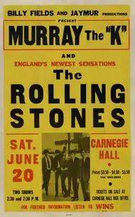 The Rolling Stones' 1964 1st American Tour was the band's first concert tour of the United States.[1] The tour commenced on June 5 and concluded on June 20, 1964.[2] On this tour, the band supported their first U.S. album The Rolling Stones. The band played eleven shows in total, including two each on 6 and 7 June, and gave several performances on various television shows during the tour. The band also recorded its next single, "It's All Over Now", next British EP, Five by Five, and much of its next US album, 12 x 5, at Chess Studios on 10 and 11 June.