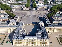 By virtue of an order issued by the Versailles district directorate in August 1794, the Royal Gate was destroyed, the Cour Royale was cleared and the Cour de Marbre lost its precious floor.[4][5]