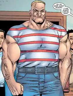 The Russian is contacted at his home in Kazakhstan by American crime lord Ma Gnucci, who offers him ten million dollars to kill the Punisher. The Russian agrees to the deal, boards a Russian airliner to North America, crashes it above Canada, and crosses the border into New York City, where he is briefed by Gnucci.[4][5] The Russian is then brought to the Punisher's current address, and engages the vigilante, their fight (which the Russian dominates) bringing them into the apartment of the Punisher's neighbor, Mr. Bumpo. The Punisher burns the Russian's face with a hot pizza that Bumpo had been dining on, trips him, and then throws Bumpo on top of him. The Russian asphyxiates under Bumpo, and has his head cut off by the Punisher, who uses it to intimidate what remains of Gnucci's forces into surrendering.[6][7][8]