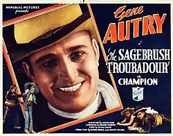 The Sagebrush Troubadour is a 1935 American Western film directed by Joseph Kane and starring Gene Autry, Barbara Pepper, and Smiley Burnette. Written by Oliver Drake and Joseph F. Poland, the film is about two Texas Rangers traveling undercover as western troubadours in search of the killer of an old, half-blind man.[1]